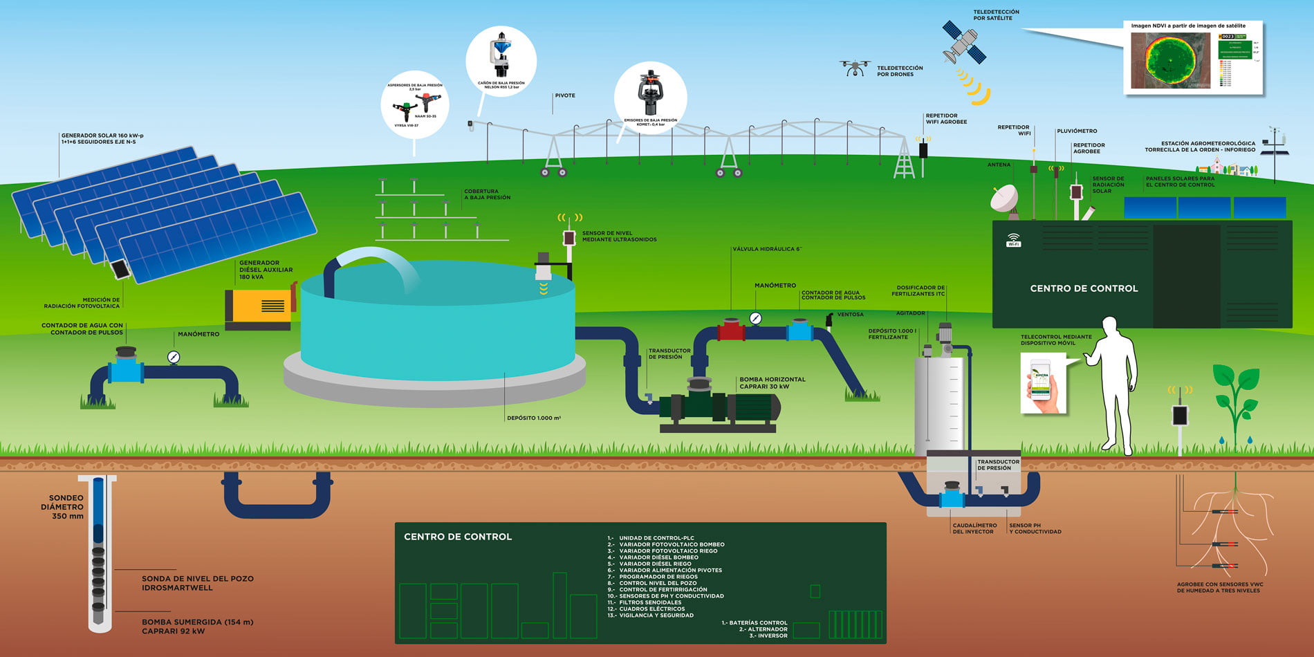 utilizar emisores capaces de trabajar a presiones muy bajas en los pivotes y coberturas, e instalaciones de goteo.